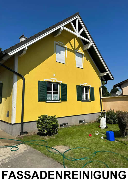 Durch spezielle Vorbehandlung wird die Fassade sanft gereinigt. Diese wird somit nicht beschädigt oder aufgeraut.